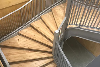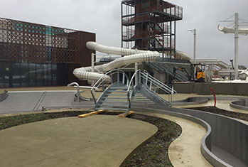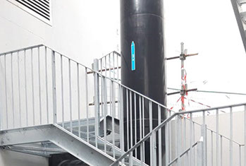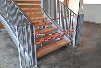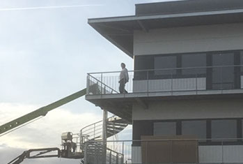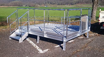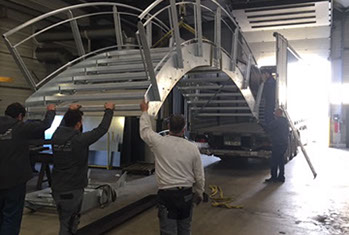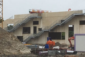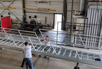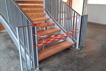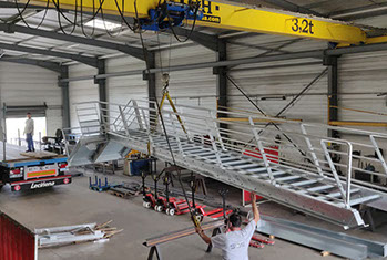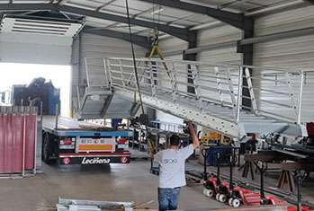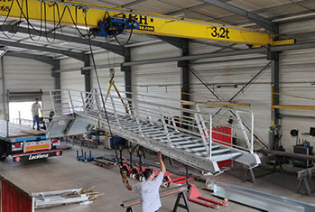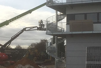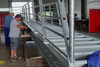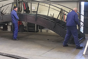 Mise en place des ponceaux , des escaliers et garde corps de la tour